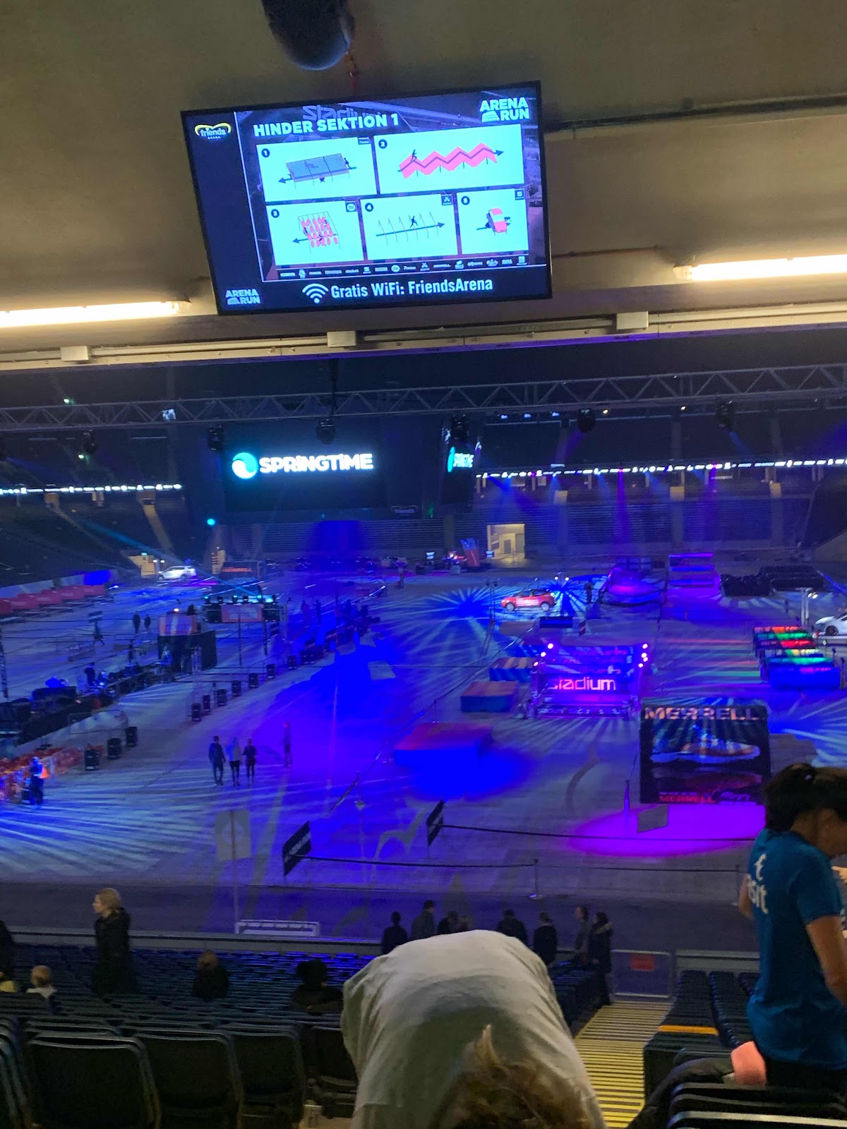 Jag har sprungit Arena run-stafett. Så kul! Banan var 2km lång och innehöll 24 hinder. Laget skulle springa 8 varv och man fick vara max 4 i laget. Vi blev bara 5 i två lag så alla fick springa tre varv var och en sprang fyra.